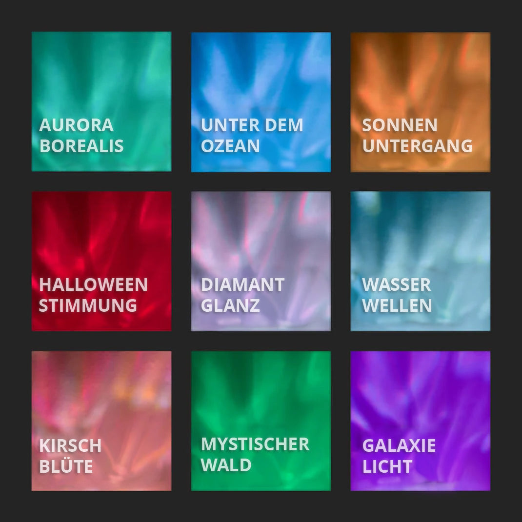 Ja, die LuxAurora-Lampe bietet 16 verschiedene Farbmodi zur Auswahl - von Polarlicht- und Unterwasser-Effekten bis hin zu einer faszinierenden Galaxie-Projektion.